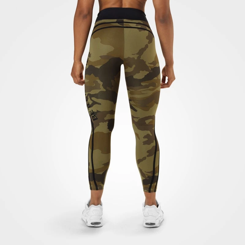 With its moisture wicking, lightweight compression fabric, the Camo High Tights combines a great functionality with a high comfortability. They have a soft, high waist and a tight fit that enhances the impression of your athletic physique. Two contrast colored lines runs up along the legs and over the butt for a sweeping look.