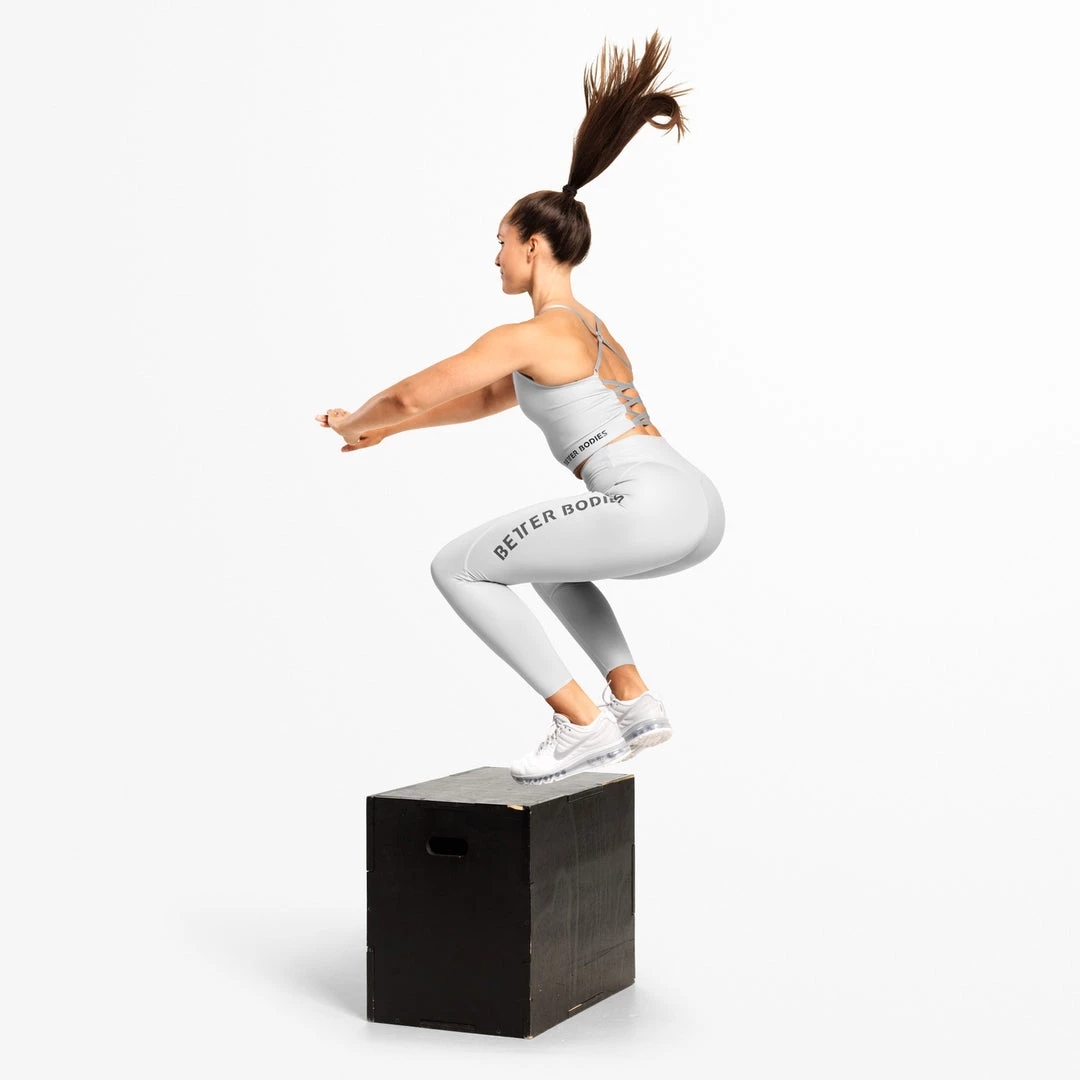 Vesey strap top is a combination of a sports bra and a tank top. The straps in the back make your back look amazing and still gives great support. The shiny fabric gives a bold look but don’t underestimate its function. This sports bra is perfect for crushing your goals at your local box. And matches well with the Vesey tights.