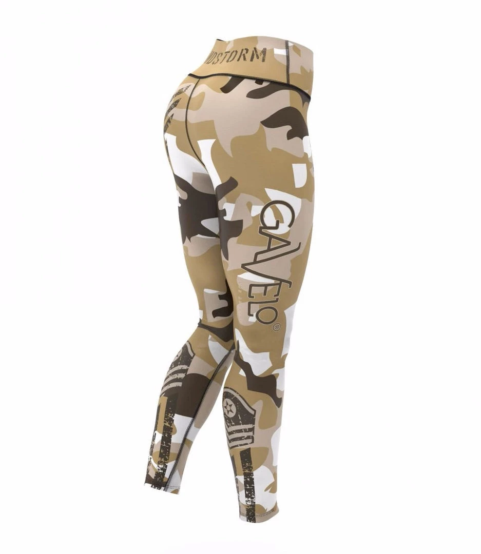 Gavelo Sandstorm compressions leggings will help you win the work out battle, even on days when you’d rather stay in bed. Put them on and get ready to be a fighter. Camouflage pattern in beige/brown/white. Decorative pattern on both calves. Gavelo logo on right thigh. Beige waist with the text ”SANDSTORM” in dark brown on the back and a cool pattern on the front.