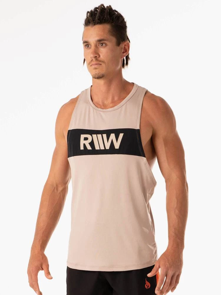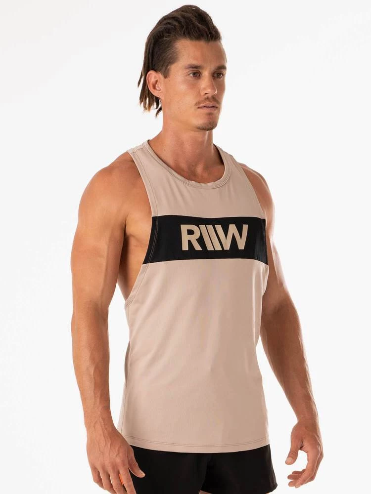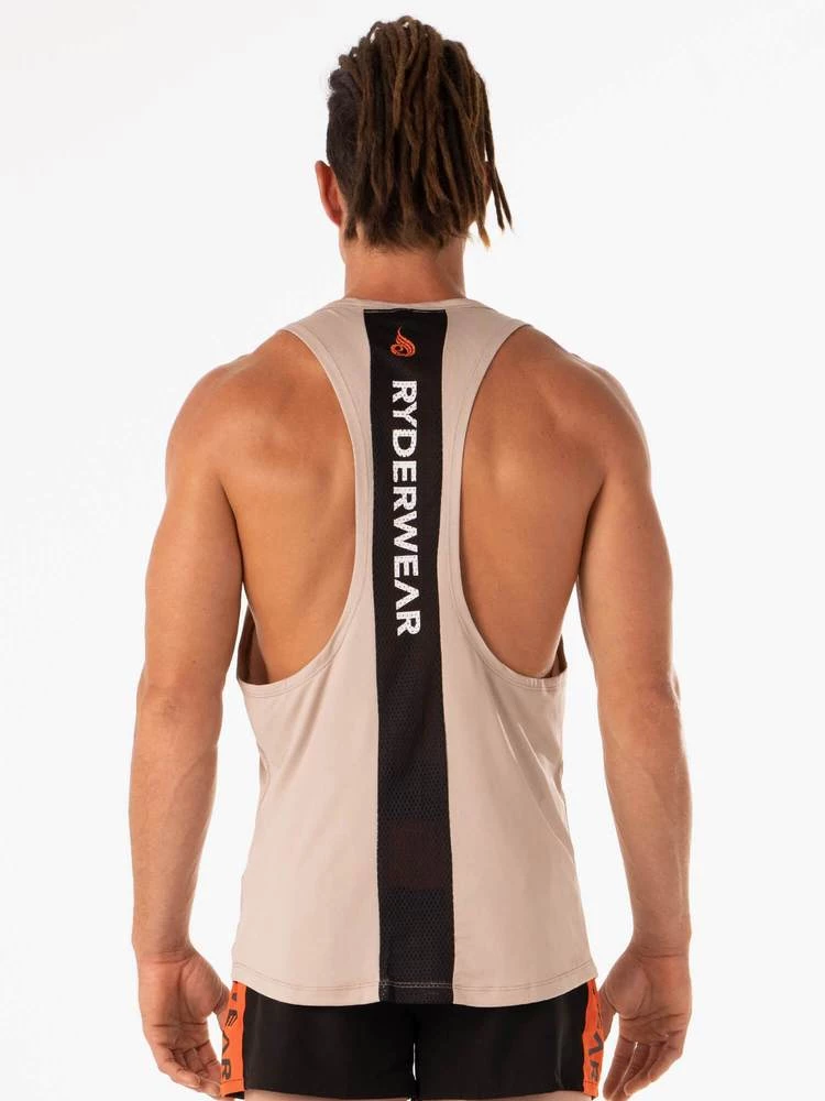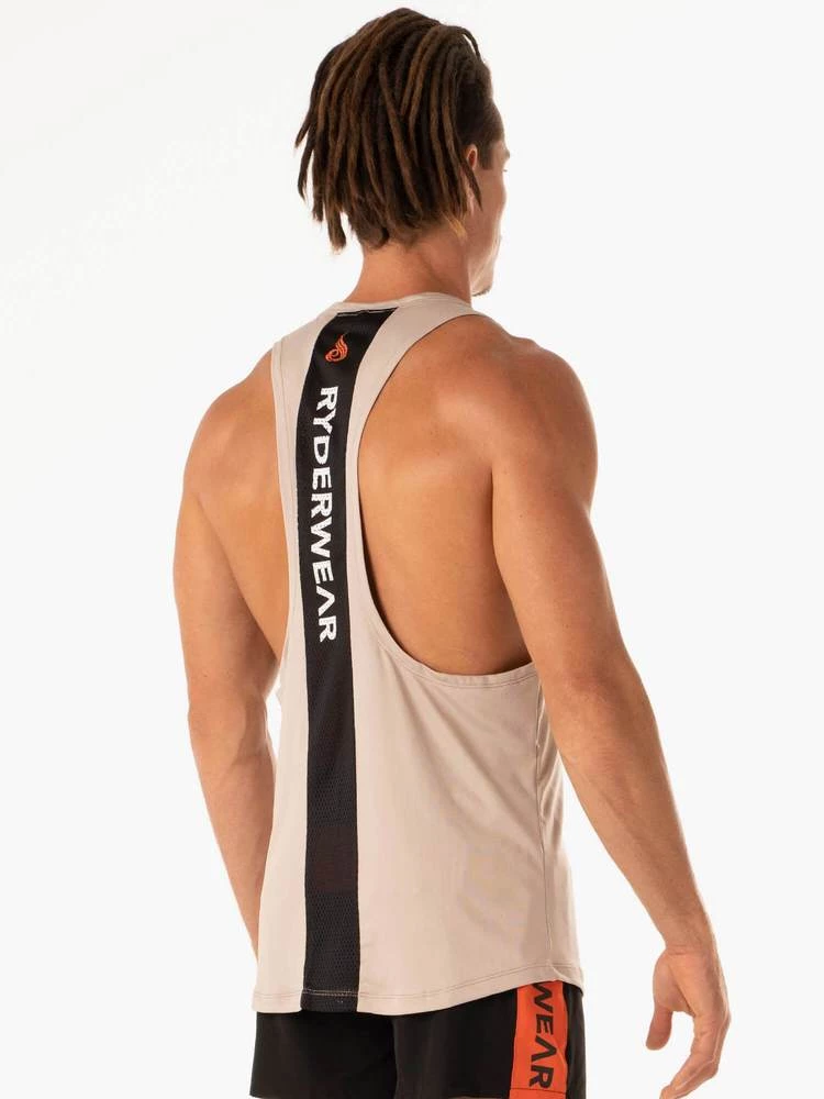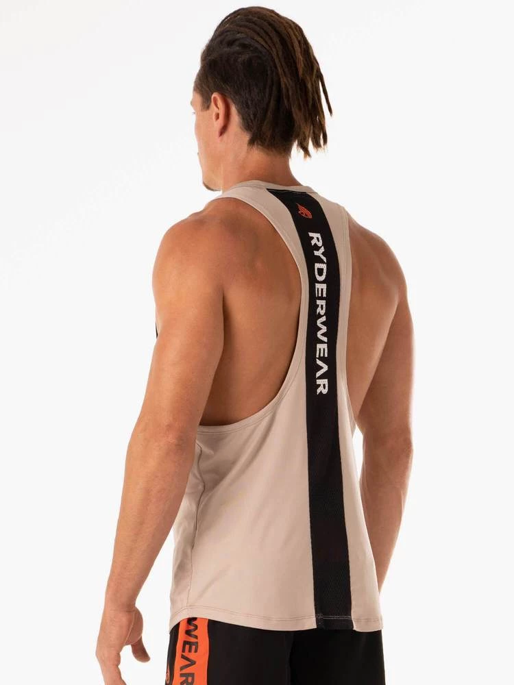The Desert Baller Tank has a high neck, low scoop armhole and is tapered in fit to accentuate your pumped shoulders and lats. This must have gym singlet is perfect for gym training at all levels and fully functional to get you through any tough lifting session. Made from sweat and moisture wicking fabric to keep you cool and dry while you train, our Desert Baller Tank is the perfect mens gym tank. Also featuring a centre back mesh panel for ventilation and style.