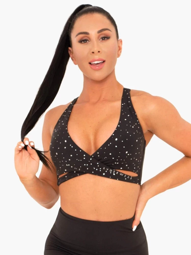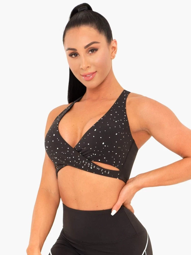 The stars have aligned! Introducing our Lunar Luxe Sports Bra. Made from lightweight compression fabric and featuring a luxe all over front foil print, you will have everyone seeing stars in this gym essential. Designed with a super flattering cross-over neckline and side cut-outs with supportive racerback, the Lunar Luxe Sports Bra will give you comfort and workout support that’s out of this world!Â